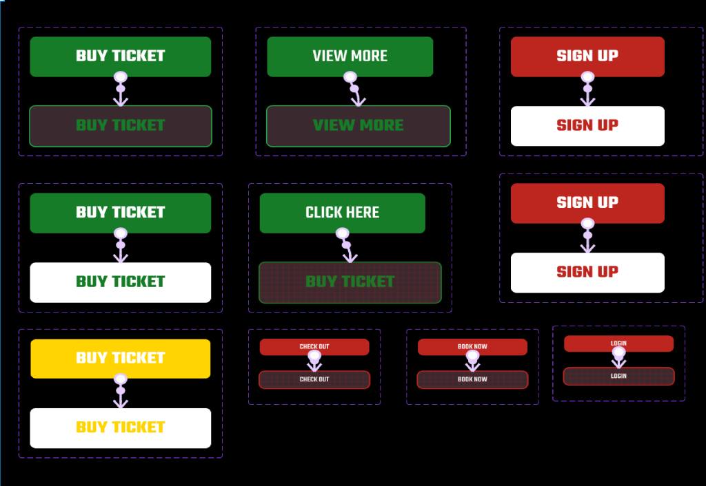 Strong action words like “Buy Ticket” and “Check Out” are strategically used in our festival design to point users in the direction of their destination, which is obviously ticket purchases. Selecting simple and striking button labels guarantees understanding and encourages the user to click the button right away. These action words are made even more noticeable and impactful by being paired with vibrantly coloured buttons, which direct users smoothly towards the ticket purchase. Utilising the red, green, yellow, and brown colour associations that were covered in the previous colour planning post gives the design more depth and appeals to users’ subconscious feelings. These can be positioned so that they immediately grab the viewer’s attention and compel them to continue on the home screen and second information screen.