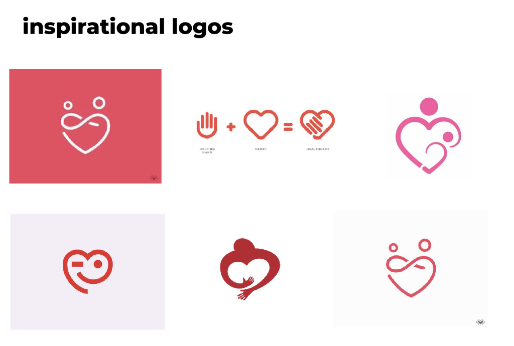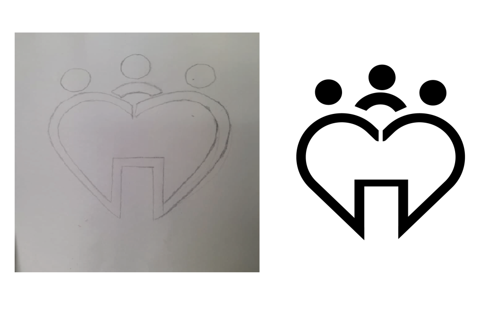 My first step was to gather and list elements that truly resonated with the concept of Welcome House before I even started sketching the logo. I knew that the heart icon or shape would be a central piece, as it symbolises warmth, compassion, and community qualities that are at the heart of Welcome House’s mission. I was drawn to the fact that the original Welcome House logo combines a heart and a house roof, so I decided that this combination would be essential to build upon. To expand my understanding of how to play with icon shapes in logo design, I spent time researching and found a range of inspiring images on Pinterest. These visuals were a game changer for me, sparking ideas and showing how designers creatively merge different forms. This exploration not only pushed me to experiment with heart shapes but also inspired me to integrate human figures, capturing the welcoming, community focused nature of Welcome House.