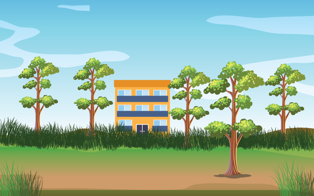 In my animation sequence, I used a clear and structured visual progression. For instance, in the outdoor scene, elements like the trees, robotic arm, and grass are introduced gradually, giving the audience time to understand the environment before introducing more complex actions.