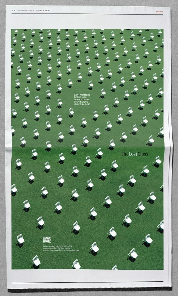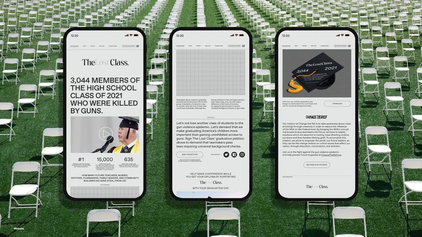 “The Lost Class” campaign exemplifies how graphic design can extend beyond traditional media, using spatial, symbolic, and technological strategies to communicate societal issues with immediate impact. Conceived in response to gun violence, the intervention visualized the high school students who would have graduated in 2021 but were instead killed, turning statistical abstraction into a tangible, emotive experience.