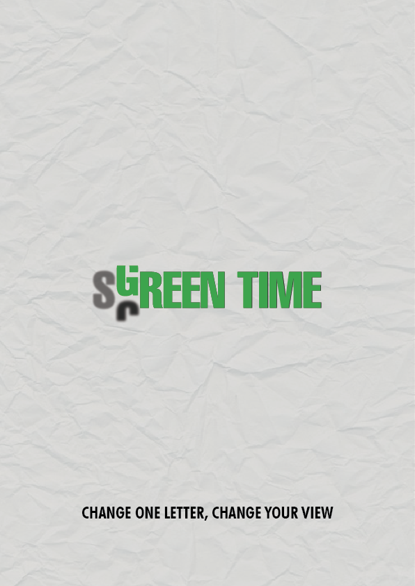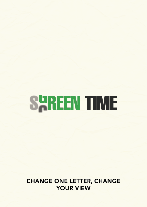 For my specific contribution to the campaign, I developed a minimalist typographic poster centered around a singular, transformative hook: “Change one letter, change your view.” The visual centerpiece is a vertical “scroll” transition where the C in Screen morphs into the G in Green. This motion mimics the familiar action of scrolling on a phone but redirects the viewer toward an organic, outdoor outcome. To enhance this, I set the S to a lower opacity to represent the fading of digital influence as the natural message takes over. I chose a clean, high-end typeface set against a tactile, crumpled paper texture to give the piece a professional “gallery” feel.